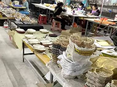 The production of a crystal bag in our factory involves several processes, which include design and prototyping, metal frame making, bag body and lining, crystal setting, assembly and finishing, quality control and packing.