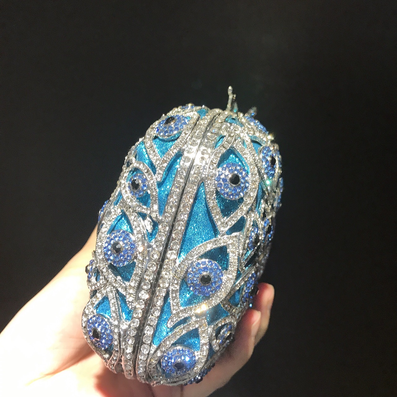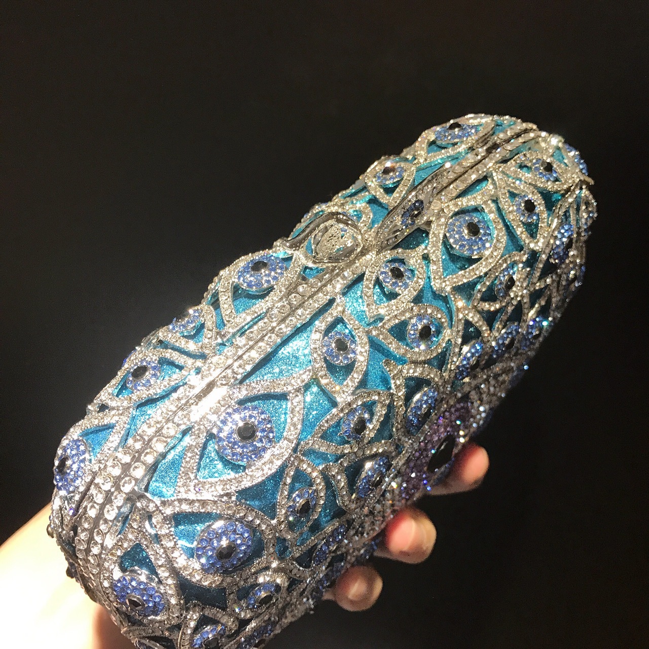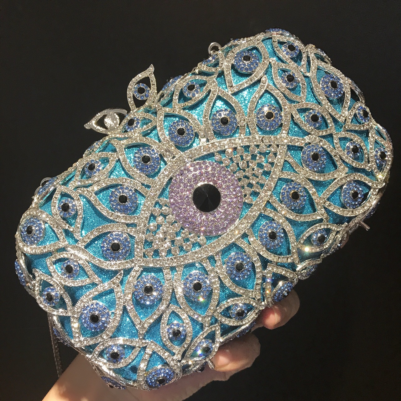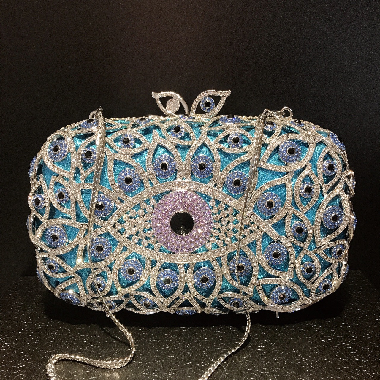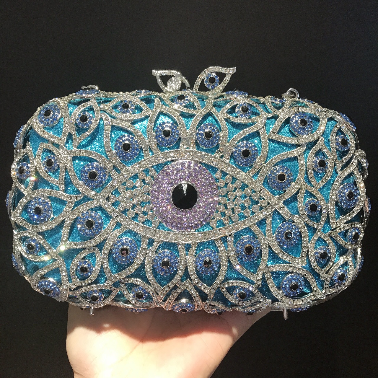 Blue Evil Eye Crystal Clutch Statement Bag for Fashion Week
