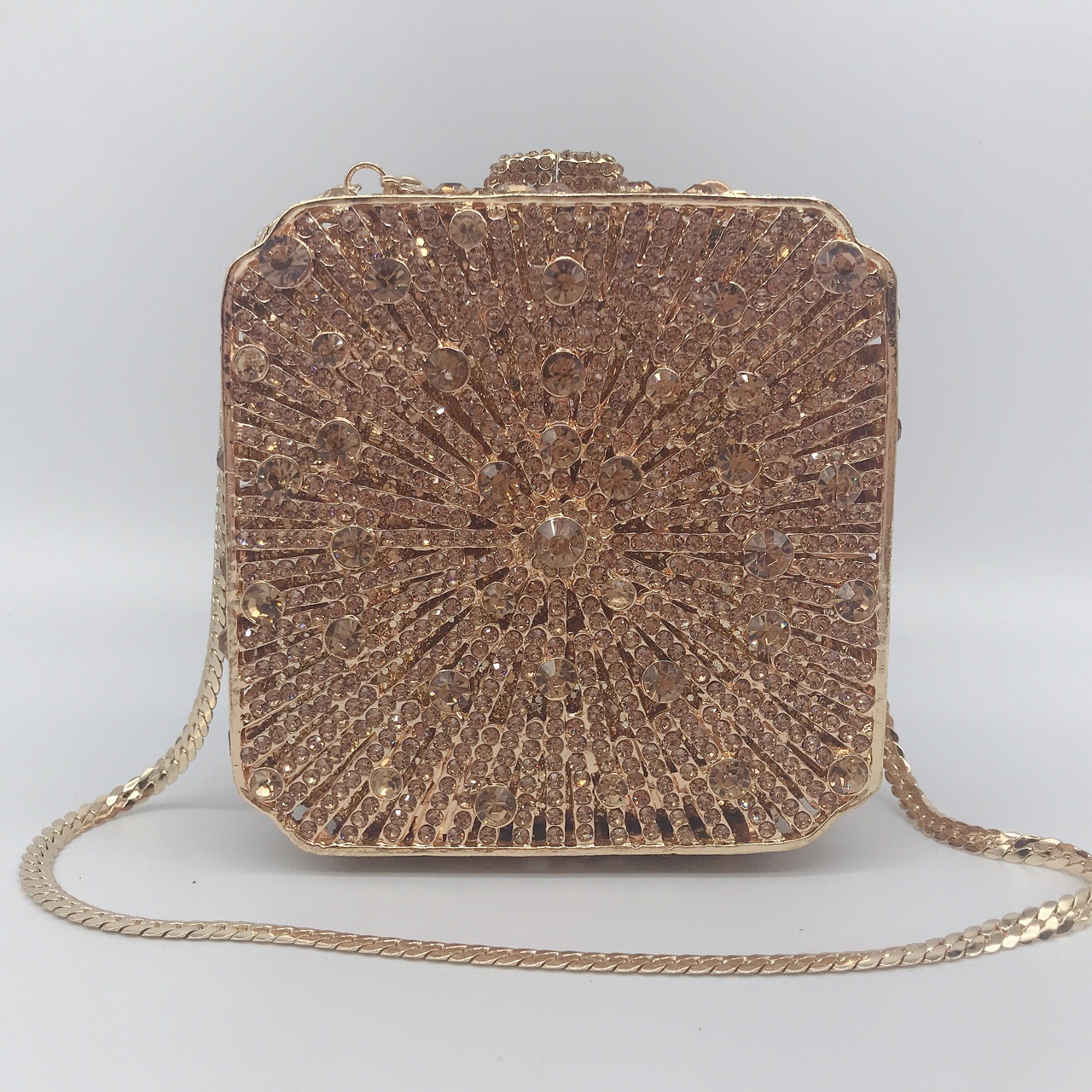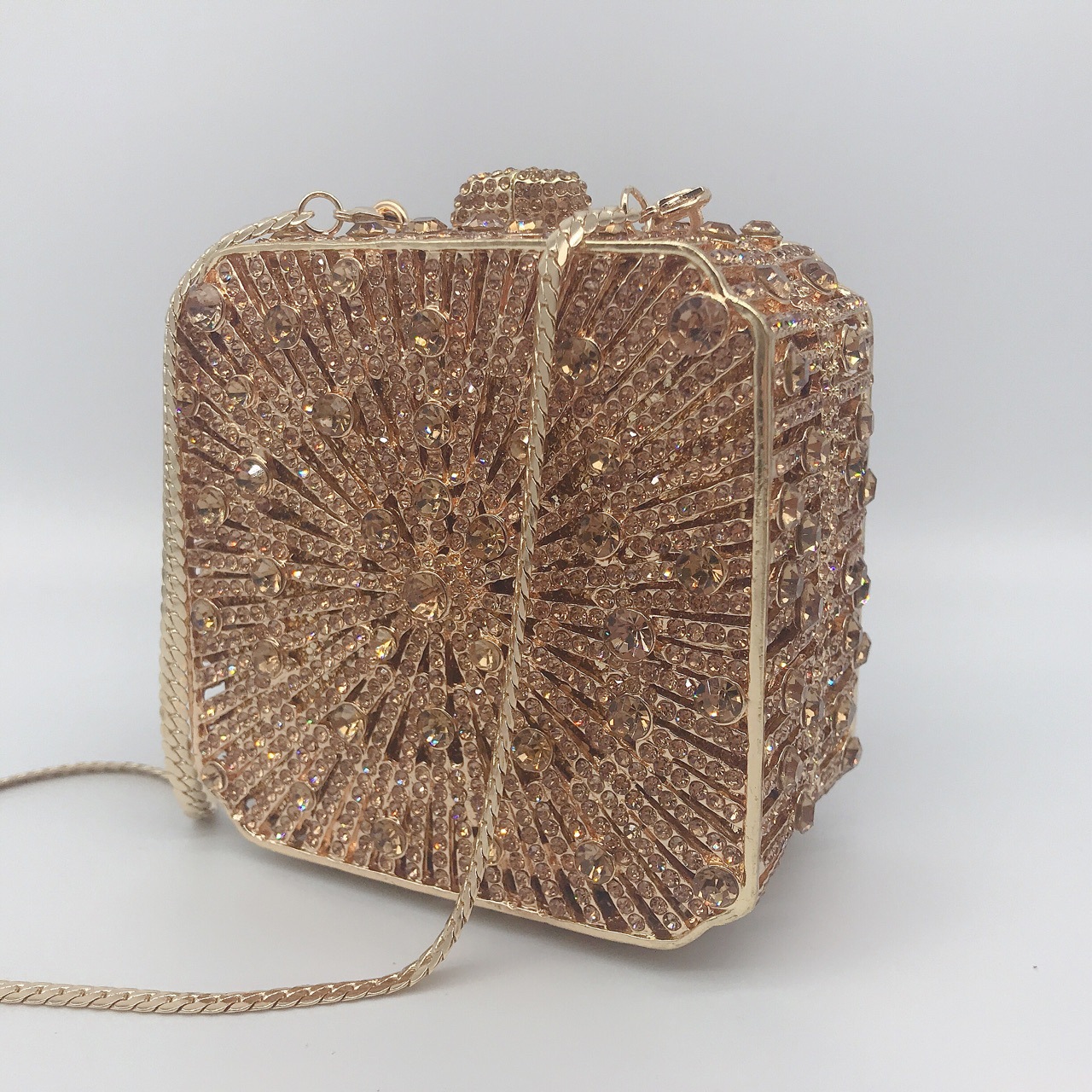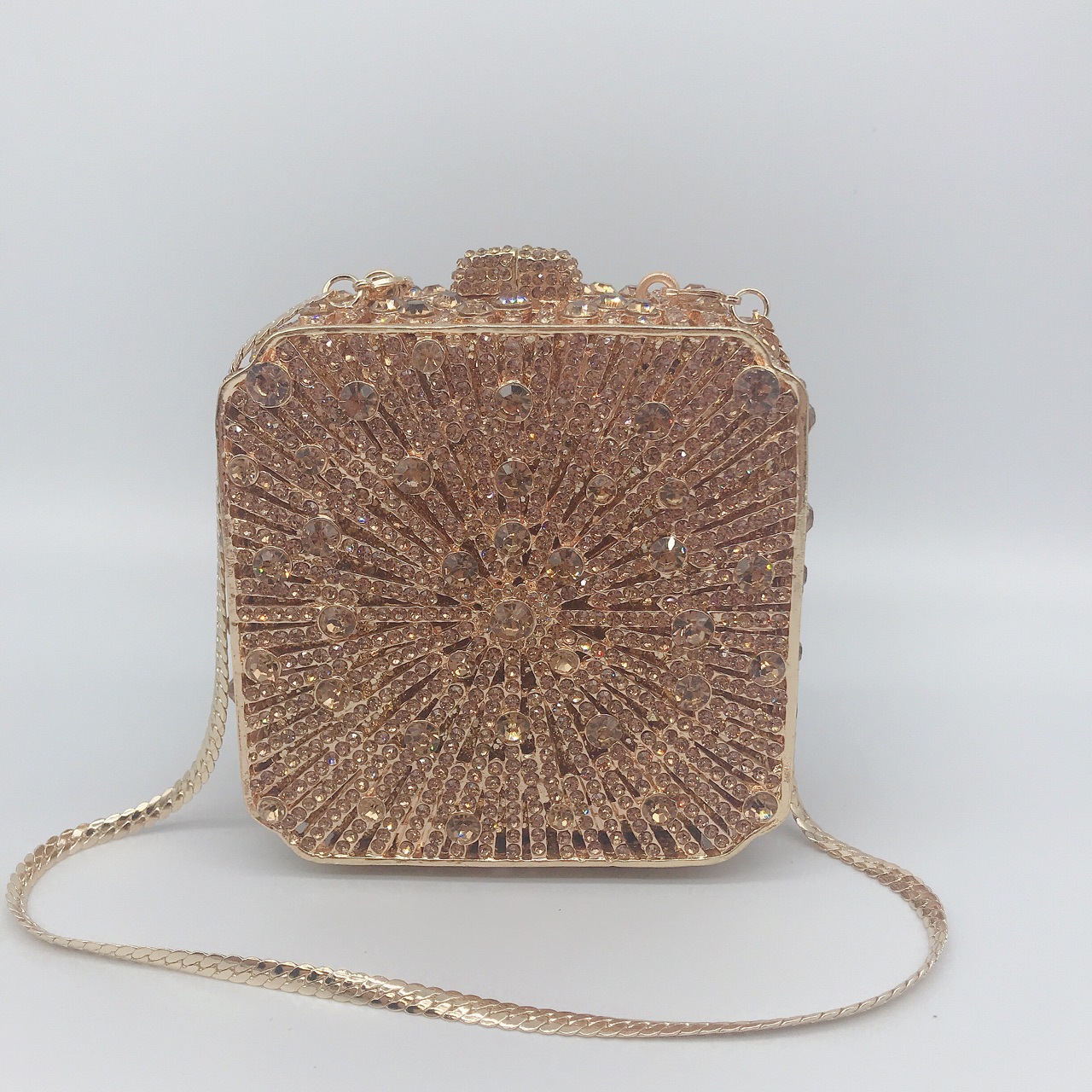 This crystal evening clutch features a striking radiant sunburst design, with fully hand-set high-shine clear crystals, we can also use AB crystals on this bag, please check the color options. On the bag, the crystals radiate naturally from its center, like starlight blossoming in the night sky. Round crystals of varying sizes are arranged in an artful scattering. Under the light, they create a rich sense of layered depth and fluid motion, making the entire bag feel alive even when static.