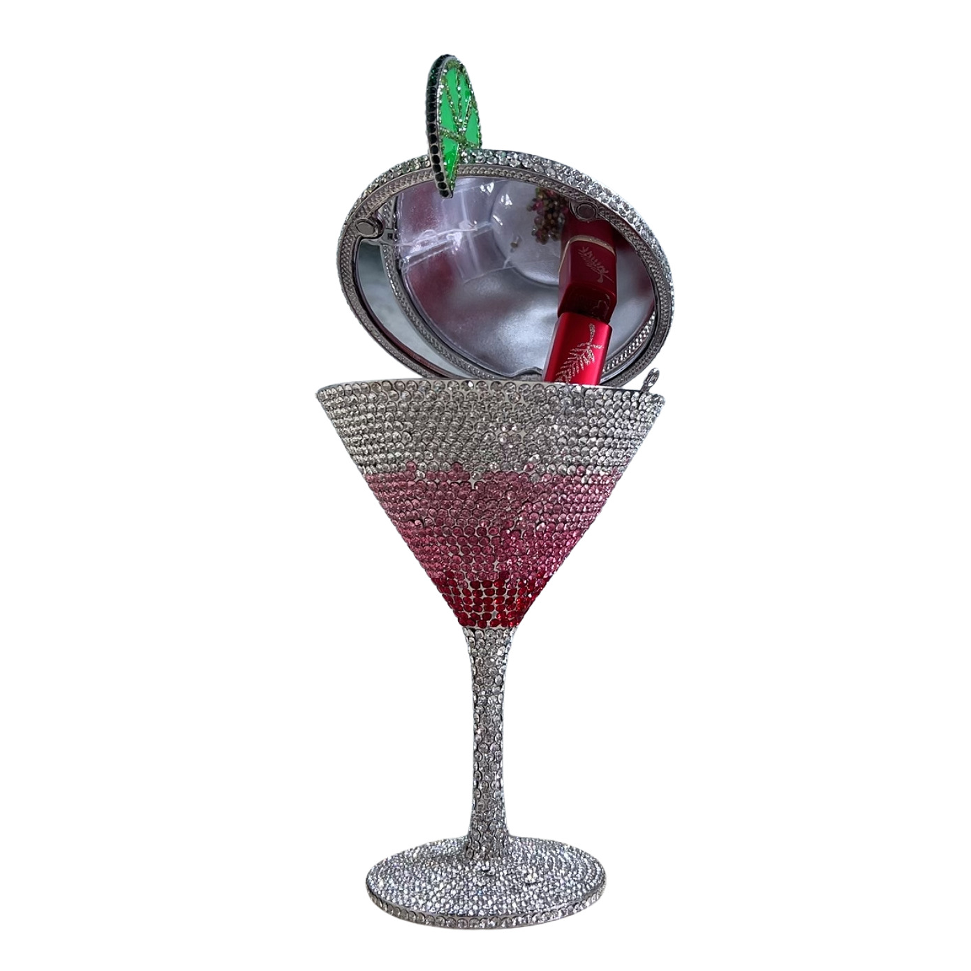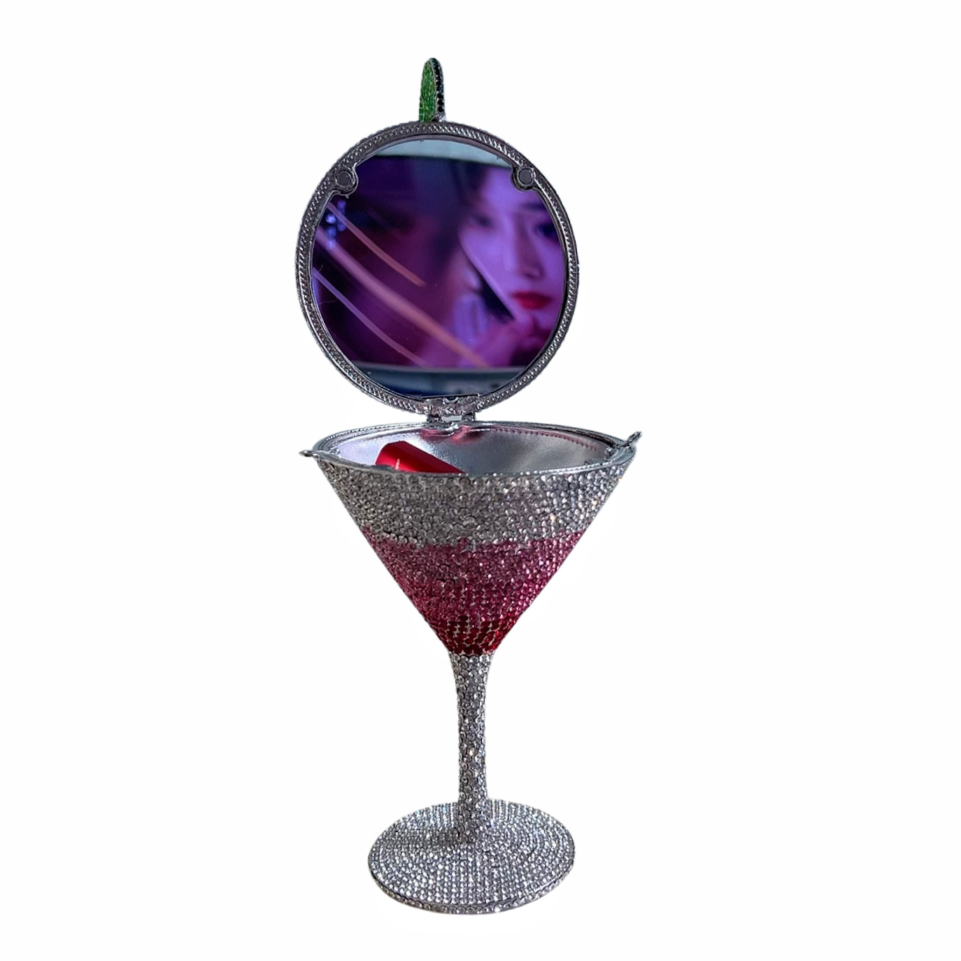 New design from our company, the back side of the cover of the goblet is a mirror. The diameter of the goblet bottom is 8cm, the diameter of the goblet cover is 12cm. The height of the goblet is 18.5cm, not including that piece of the lemon, if included, it is 20.5cm. You can not put a phone inside, it is only for small items, like lipstick and keys.